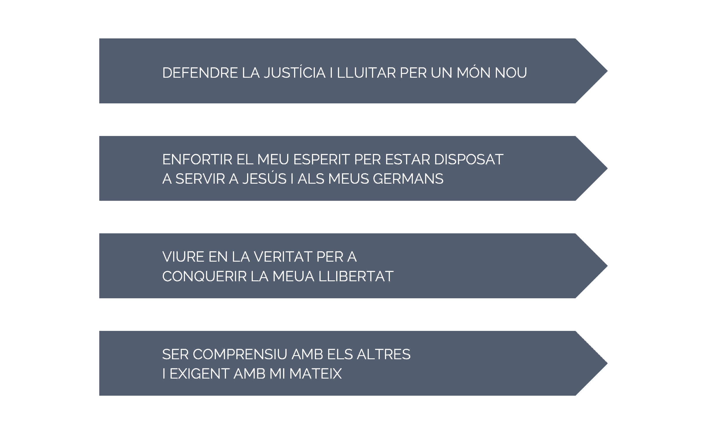 A través d’aquest gest, el jove es compromet a complir el quart i últim Principi de Vida Juniors: “Enfortir el meu esperit per estar disposat a servir a Jesús i als meus germans”.